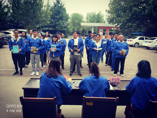 全体员工在办公楼前举行捐书仪式